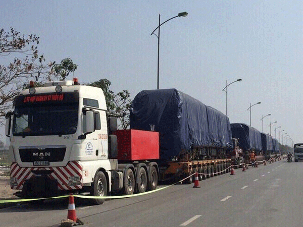 12 toa tàu của tuyến đường sắt đô thị đầu tiên đã về tới Hà Nội, đang được lắp đặt trên đường ray.