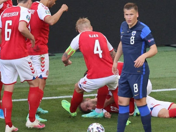 Trong lúc tiến về phía đường biên để đón một quả ném biên, tiền vệ Eriksen đột quỵ trên sân khiến trọng tài phải lập tức cho dừng trận đấu.