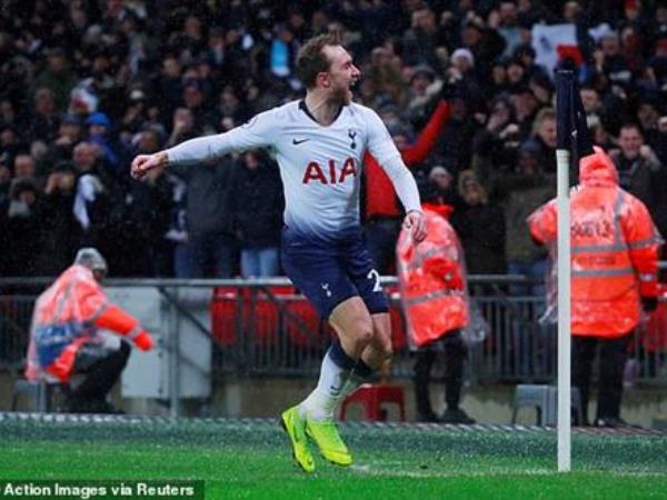 Pha lập công duy nhất của Eriksen ở phút 80 giúp các cầu thủ Tottenham vượt qua chính Inter Milan để vươn lên vị trí thứ 2 bảng B.