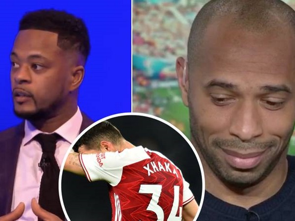 Patrice Evra chia sẻ câu chuyện thú vị về việc Thierry Henry nhanh chóng tắt TV khi thấy Granit Xhaka đeo băng thủ quân của Arsenal.