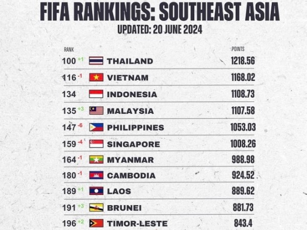 Bất ngờ thứ hạng của tuyển Việt Nam, 1 đội bóng Đông Nam Á nhảy vọt