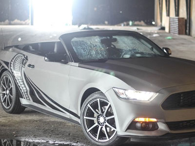 Mẫu xe thể thao cơ bắp phong cách Mỹ được dán lớp decal nhôm xước độc đáo, độ turbo cho động cơ, vành và ống xả mới.