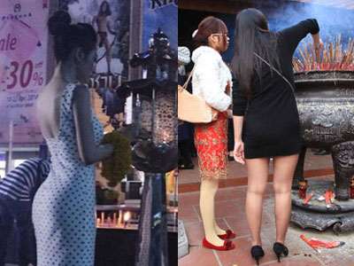 Đền chùa là nơi trang nghiêm, thanh tịnh, thế nhưng ở nơi tôn nghiêm này vẫn thường xuyên có những cô gái váy ngắn, quần soóc, hay áo trong suốt đi lễ khiến nhiều người nhức mắt.