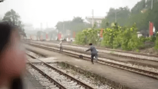 Dù lái tàu đã liên tục kéo còi cảnh báo và phanh khẩn cấp, người đàn ông cao tuổi vẫn thản nhiên băng qua đường sắt tại ga Vĩnh Yên. Khoảnh khắc sinh tử chỉ dừng lại khi nhân viên trực ban hô hoán và lao ra ngăn chặn kịp thời.