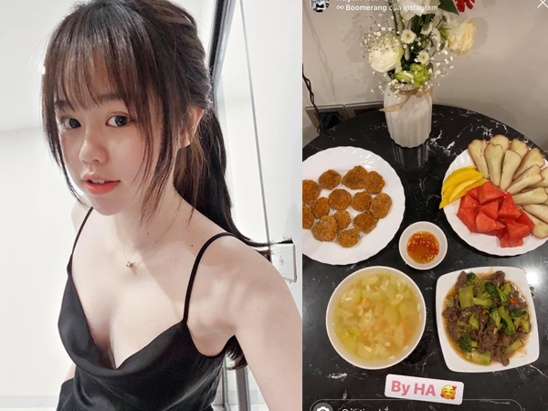 Huỳnh Anh khoe loạt ảnh chụp mâm cơm tự nấu cực ngon mắt, dân tình rần rần hối Quang Hải 'rước nàng về dinh'