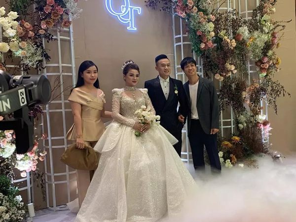 Viên Minh lộ diện cùng ông xã Công Phượng trong lễ cưới của cầu thủ Võ Huy Toàn, nhan sắc gái một con khiến không ít người 'mòn con mắt'