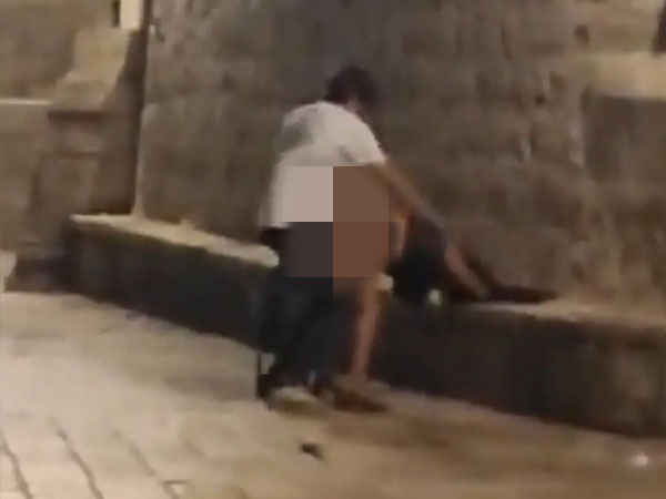Người đi đường đã ghi lại hành vi phản cảm của cặp đội ngay tại địa quay bộ phim nổi tiếng "Game of Thrones" ở khu vực Old Town, thành phố Dubrovnik, Croatia.