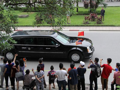 Rất đông người dân Hà Nội đã tập trung kín các con đường để chờ đoàn xe của Tổng thống Mỹ Barack Obama từ sân bay Nội Bài di chuyển về khách sạn Marriott. Tuy nhiên, tất cả đã phải thất vọng.