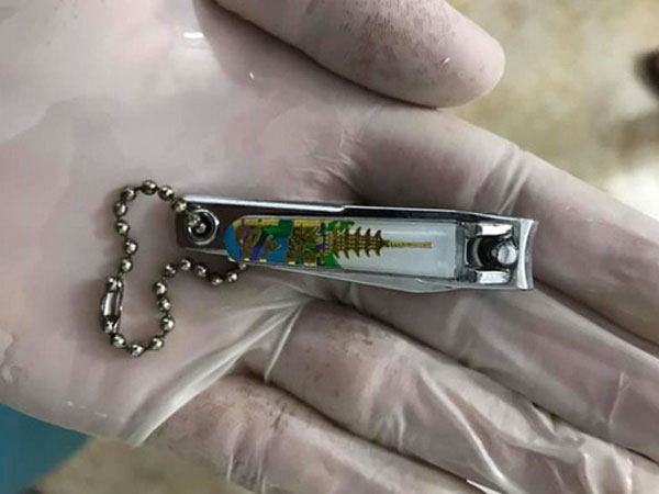 Trung tâm Y tế huyện Cẩm Khê (Phú Thọ) vừa cấp cứu gắp dị vật là... một chiếc bấm móng tay trong dạ dày của bệnh nhi 9 tuổi.