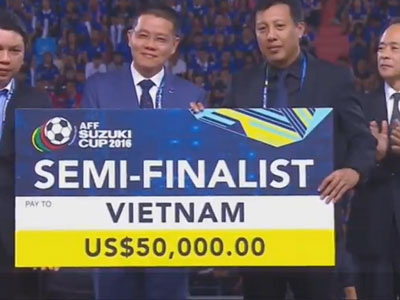Liên đoàn bóng đá Đông Nam Á (AFF) đã trao thưởng cho đội tuyển Việt Nam sau khi AFF Cup 2016 hạ màn.