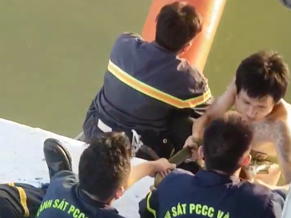 Sau gần 1 tiếng nghẹt thở, các chiến sĩ cứu hộ ở Đà Nẵng đã đưa được nam thanh niên có biểu hiện ngáo đá cố thủ trên cầu Thuận Phước lên vị trí an toàn.
