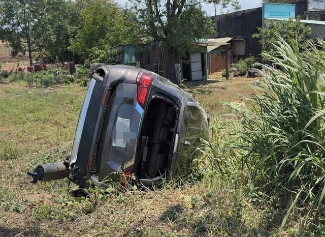 Một vụ tai nạn giao thông nghiêm trọng xảy ra trên Quốc lộ 55 vào gần trưa 5/4 khiến một ô tô mất kiểm soát, lao xuống vệ đường và lật ngửa, khiến ba người mắc kẹt bên trong.
