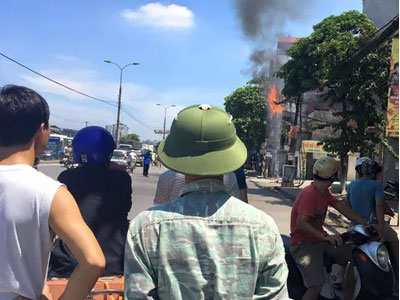 Đang đi trên đường Giải Phóng (Hà Nội), nhiều người hoảng hồn khi thấy cột điện cháy lớn. Lực lượng công an phải dùng xe chặn đường tránh nguy hiểm để tiến hành công tác cứu hỏa, dập lửa.
