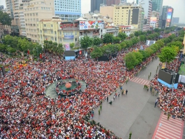 Tại các tuyến đường Võ Văn Tần, Nam Kỳ Khởi Nghĩa, Nguyễn Đình Chiểu,...(TP.HCM), hàng vạn người dân mặc áo cờ đỏ, sao vàng, tay cầm cờ Tổ quốc đã "nhuộm đỏ" các ngả đường có đoàn diễu binh, diễu hành đi qua với một tâm thế háo hức, tự hào.