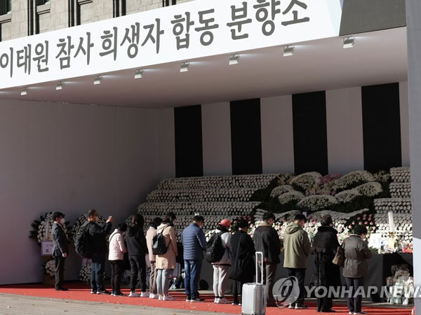 Hơn 117.000 người dân Hàn Quốc đã tới các bàn thờ tang lễ được lập trên khắp Seoul dành cho các nạn nhân của vụ giẫm đạp đêm Halloween, nơi ít nhất 156 người thiệt mạng ở Itaewon để tưởng niệm các nạn nhân trong ngày cuối quốc tang.