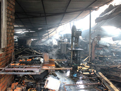 Cháy lớn lúc rạng sáng, xưởng gỗ bị thiêu rụi