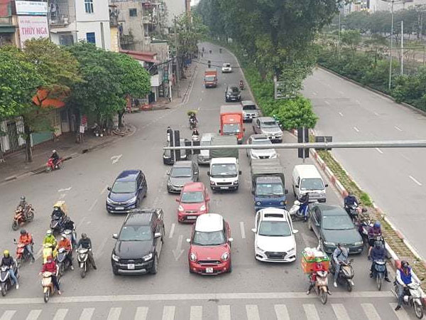 Phương tiện giao thông ken đặc ngã tư dù Hà Nội kéo dài giãn cách xã hội đến 22/4