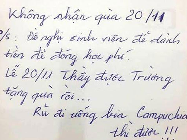 Thầy giáo 'trường người ta' tuyên bố không nhận quà ngày 20/11 với lý do hết sức đáng yêu
