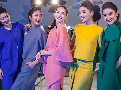 Hoa hậu Kỳ Duyên, Đặng Thu Thảo, Ngọc Hân cùng Á hậu Huyền My, Tú Anh góp mặt chung trong một bộ ảnh.