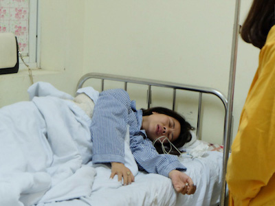 Nằm trên giường bệnh, chị Nguyễn Thu Thảo, quản lý của Linh Miu vẫn liên tục buồn nôn vì bị chấn thương vùng đầu và chưa hết hoảng loạn sau khi bị người bán vàng mã đấm đá túi bụi vào người, dùng ống điếu đánh vào đầu chị.
