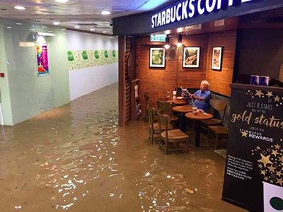 Hình ảnh cụ ông ngồi đọc báo và thưởng thức đồ uống trong một quán cafe bị ngập lụt ở Hong Kong thu hút hàng nghìn lượt thích trên mạng xã hội.