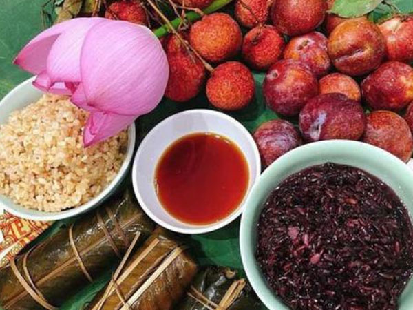 Mâm lễ hoa quả, rượu nếp đẹp mắt đắt hàng ngày Tết Đoan Ngọ