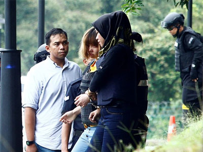 Theo Hãng tin Reuters, cảnh sát Malaysia đã áp giải hai nữ nghi phạm đến tòa trong tình trạng bị còng tay và được mặc áo giáp chống đạn. Hai nghi phạm vẫn mặc cùng một bộ đồ như lúc chụp ảnh vào hồ sơ hình sự.