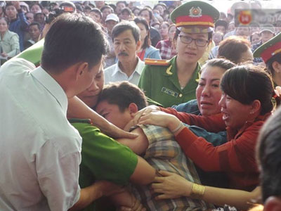 Từ lúc 3 bị cáo xuất hiện trong phiên tòa xét xử cho đến khi Đại diện Viện kiểm soát đọc bản cáo trạng, những tiếng kêu khóc vẫn không ngừng vang lên...
