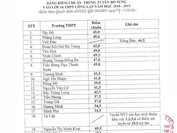 Hôm nay 18/7, Sở GD-ĐT Hà Nội công bố điểm chuẩn trúng tuyển bổ sung vào lớp 10 các trường THPT công lập và lớp 10 chuyên năm học 2025-2026.