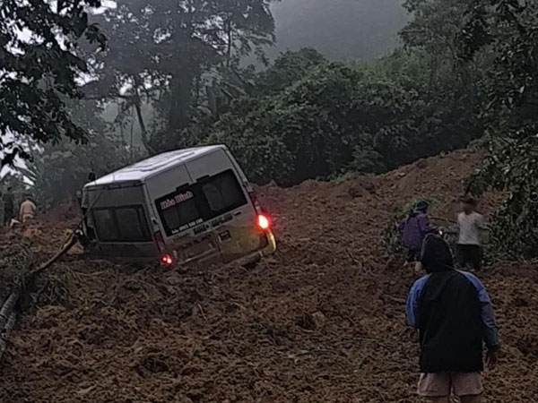 Khối lượng đất đá sạt ước khoảng 2.000 mét khối, lấp 1 xe khách 16 chỗ. Hậu quả 5 người chết, 4 người bị thương nặng, hiện chưa thống kê được số lượng người trong xe.