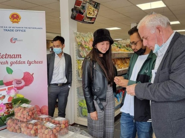 Vải thiều Thanh Hà (Hải Dương) lần đầu tiên xuất khẩu chính ngạch sang Hà Lan được bán với giá 18 euro, hơn 550.000 đồng/kg.