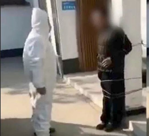 Người đàn ông Trung Quốc bị trói vào cột nhà vì không đeo khẩu trang