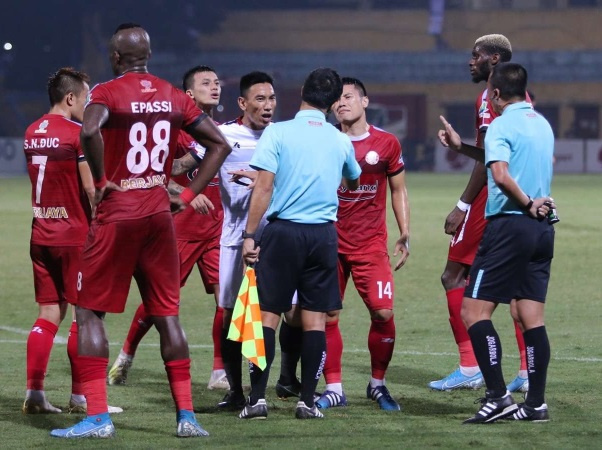 Không đồng tình với quyết định của trọng tài chính, các cầu thủ TP.HCM đã phản ứng dữ dội và bỏ ra khỏi khu vực sân thi đấu.