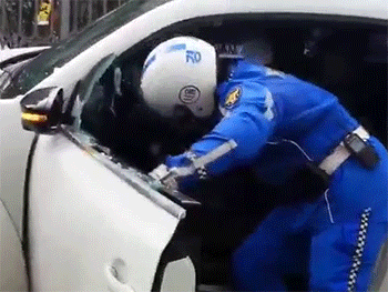 Clip tài xế Hàn Quốc chạy trốn bị cảnh sát đập vỡ kính xe
