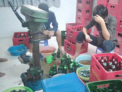 Đường dây này đã "hô biến" bia rẻ tiền thành thương hiệu đắt tiền rồi đem đi tiêu thụ ở các đại lý cấp 2 của một xã giáp ranh của huyện Đức Hòa, tỉnh Long An.