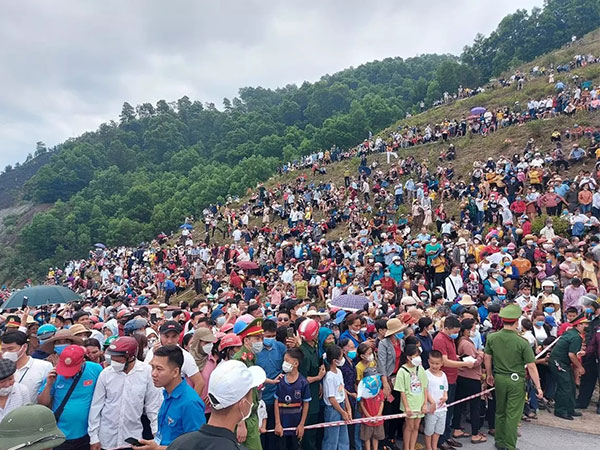 Sáng nay (7/5), hàng ngàn người dân khắp nơi đổ về công trình thủy lợi Ngàn Trươi Cẩm Trang (Vũ Quang, Hà Tĩnh) xem trình diễn bay khinh khí cầu chào mừng Sea Games 31.