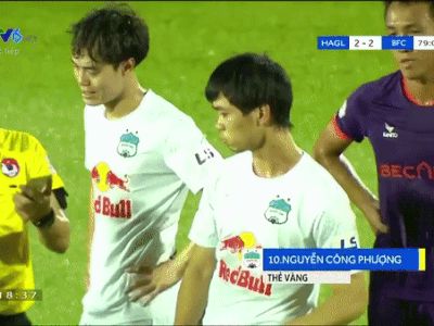 Công Phượng tung chai nước lên qua đầu trọng tài Nguyễn Viết Duẩn, sau khi anh nhận thẻ vàng trong trận hòa 2-2 với Bình Dương chiều 2/5.