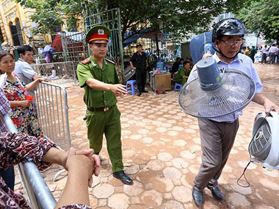 Sáng 23/9, hiện trường biệt thự 107 đường Trần Hưng Đạo (Hà Nội) vẫn bị phong tỏa, những người muốn vào tìm kiếm tài sản luôn có sự giám sát của cảnh sát.