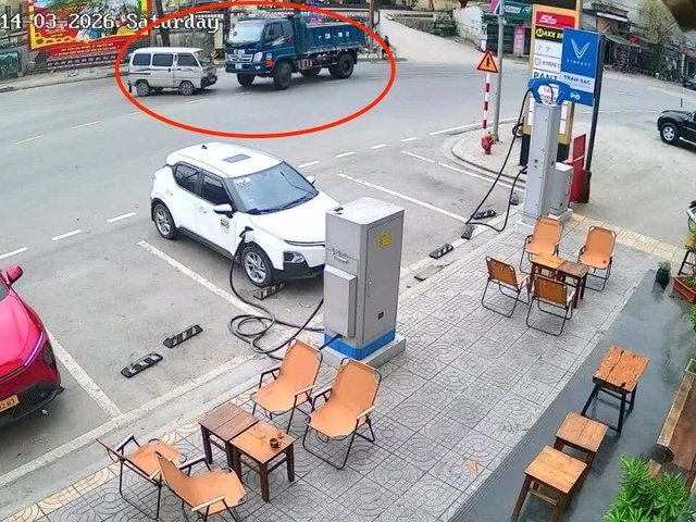 Clip: Cú tông trực diện giữa xe van và xe tải tại ngã ba, đầu xe bẹp dúm sau tiếng va chạm chói tai