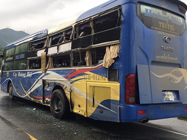 Xe khách cùng hai xe đầu kéo và một xe tải tông liên hoàn trên đường tránh gần cửa hầm Hải Vân khiến giao thông tê liệt nhiều giờ.