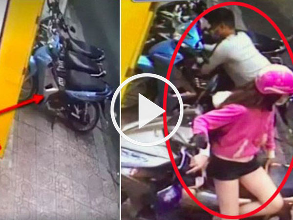 Trong lúc hai tên khác đang vờ hỏi đường để đánh lạc hướng bảo vệ thì cô gái ngồi trên xe che chắn cho đồng bọn ra tay bẻ khóa chiếc xe bên cạnh.