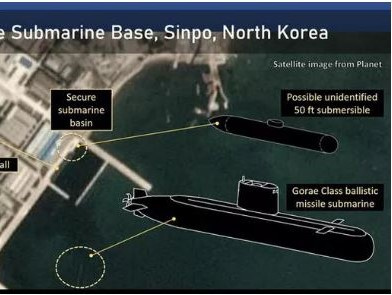 Một vật thể dài khoảng 15 m được nhìn thấy trên bến cảng một căn cứ bí mật của hải quân Triều Tiên, dường như là một chiếc tàu ngầm nhỏ.