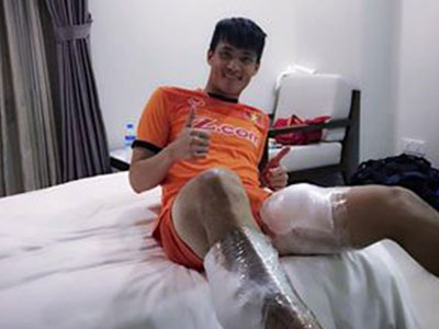 Công Vinh “khoe”... đôi chân chườm đá vì bị Malaysia chơi xấu