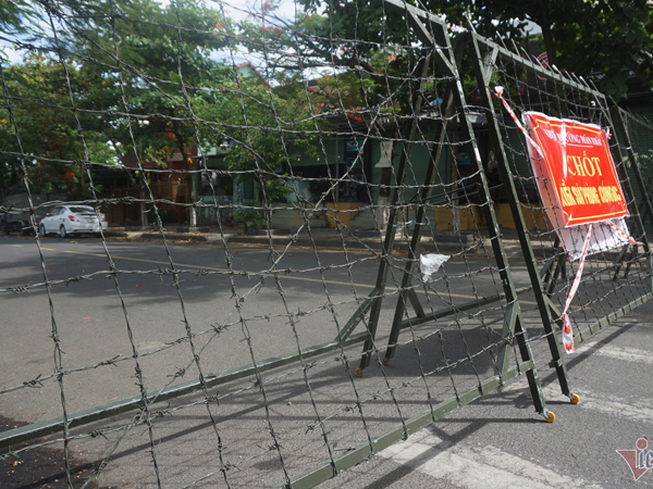 UBND quận Sơn Trà (Đà Nẵng) dựng hàng rào thép gai, dải phân cách cứng bê tông để ngăn người dân không di chuyển ra khỏi khu vực cách ly y tế.