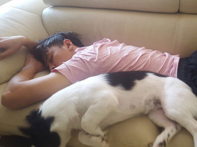 Vợ chồng diễn viên rất thích chụp ảnh với cún cưng, thậm chí còn ngủ cùng.