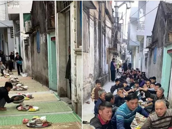 Cả xóm cùng nhau ăn cỗ, năm nào cũng trải chiếu ăn xuyên ngõ khiến ai nấy ước ao
