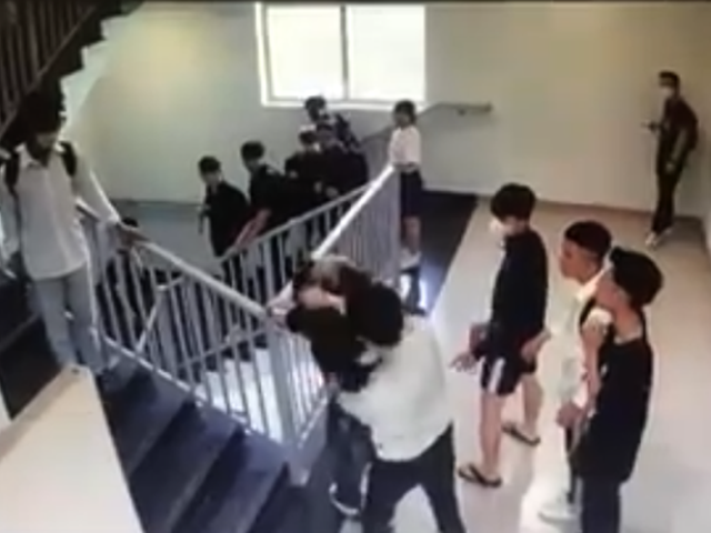 Mạng xã hội đang dậy sóng trước clip nam sinh viên Trường ĐH FPT cơ sở Hoà Lạc bị bạn hành hung, dùng vật nhọn đâm vào gáy gây đổ máu ngay trong trường.