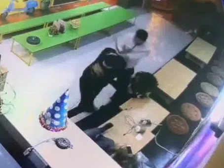 Đoạn clip ghi lại sự việc 1 khách hàng với cánh tay xăm trổ và thái độ bặm trợn dùng gậy đập mạnh vào đầu nhân viên trong tiệm sửa chỗ điện thoại đến chảy máu.