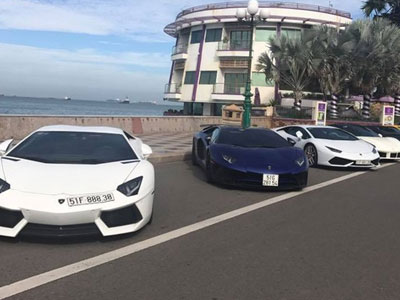 6 chiếc siêu xe tụ tập cùng nhau tại quận 7, Tp. Hồ Chí Minh, và nhanh chóng "phượt" xuống Vũng Tàu với sự góp mặt lần đầu tiên của "siêu phẩm" Lamborghini Aventador SV thuộc sở hữu của Minh "Nhựa".