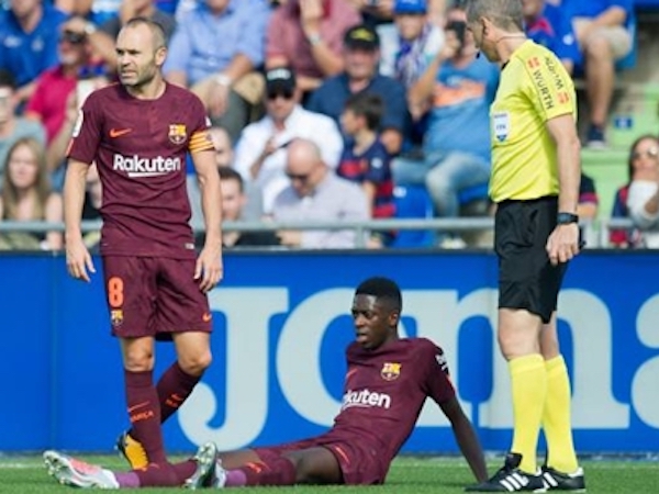 Niềm vui chiến thắng của Barcelona trước Getafe tại vòng 4 La Liga đã không trọn vẹn khi tiền vệ Ousmane Dembele bị dính chấn thương gân khoeo.